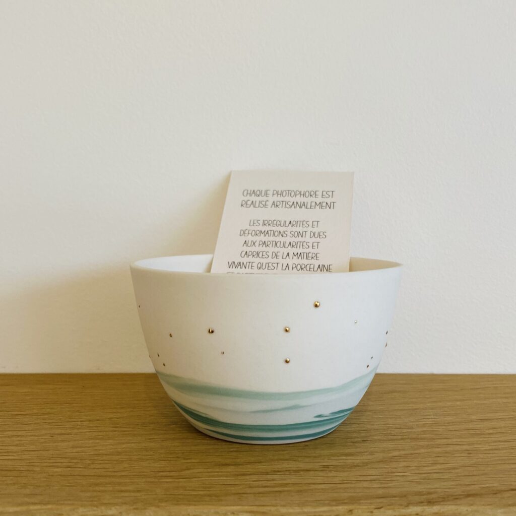 Les ‘Petites Lumières’ sont des photophores en porcelaine, créés en petites séries, au gré de mes envies et des rencontres qui illuminent ma vie. Chaque pièce est travaillée suivant une technique laissant une grande place au hasard et à l’inspiration du moment, le jeu des couleurs étant aléatoire et guidé par les mouvements, ce qui […]