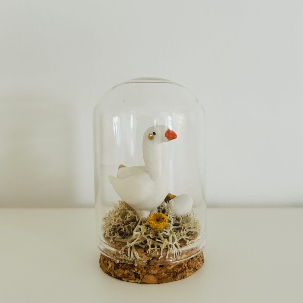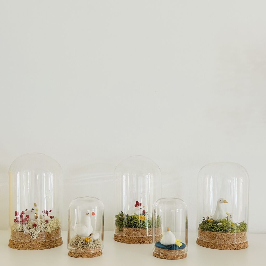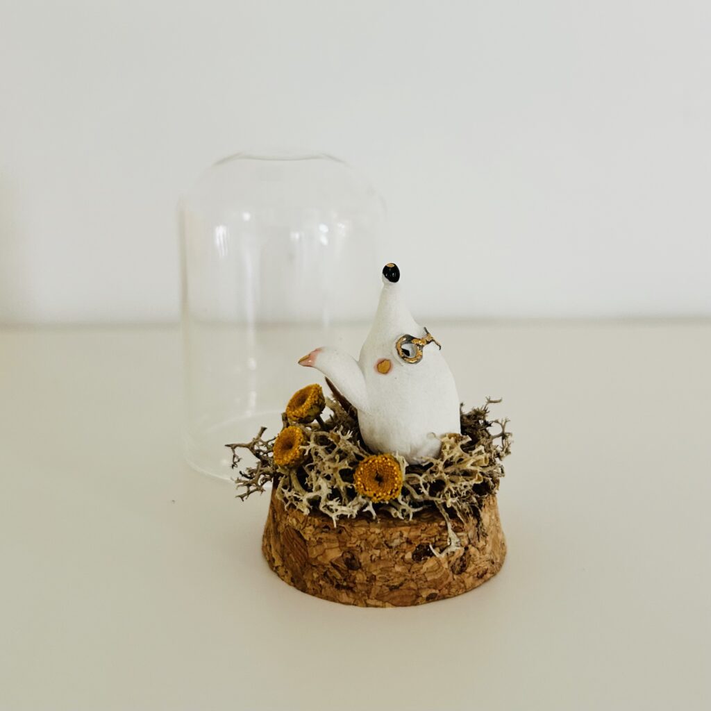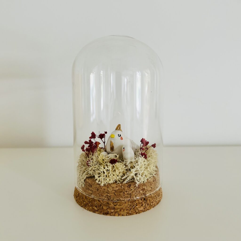 Petite série de personnages en porcelaine modelés à la main présentés dans une petite cloche en verre façon ‘Cabinet de Curiosités’ Taille Mini – Chaque pièce est unique Oie et son oeuf en porcelaine blanche Sur son lit de mousse d’Islande (couleur stabilisée) & fleur séchée Habitat : mini cloche en verre (4/6 cm) – […]