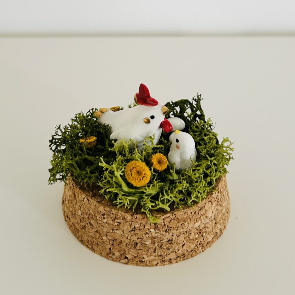 Petite série de personnages en porcelaine modelés à la main présentés dans une petite cloche en verre façon ‘Cabinet de Curiosités’ Taille Mini – Chaque pièce est unique Coq en porcelaine blanche Sur son lit de mousse d’Islande (couleur stabilisée) & fleur séchée Habitat : mini cloche en verre (4/6 cm) – socle en liège […]