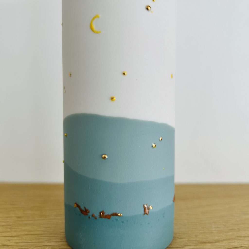Vase en porcelaine, travaillé en petites séries thématiques dans le même esprit que les photophores, mais un peu plus épais et émaillé à l’intérieur, ce qui permet un nettoyage facile… Série limitée : ‘Les écureuils’ Porcelaine peinte à la main Emaillé à l’intérieur et mat à l’extérieur – cuisson haute température – détails or fin […]