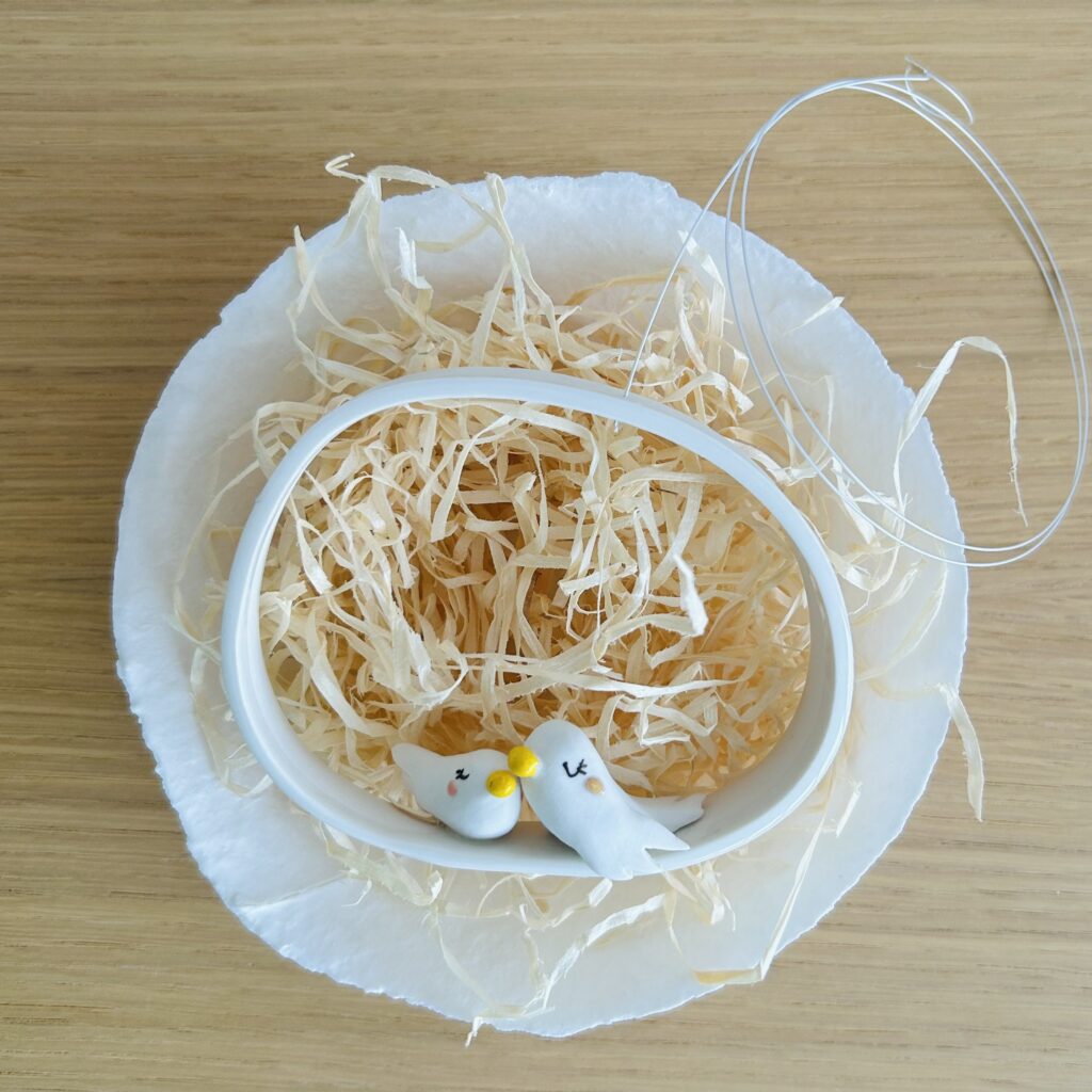 ´Les inséparables’ Se balançant au gré du vent… Petite série de suspensions en porcelaine, à accrocher au plafond ou dans un encadrement de fenêtre, très simplement, avec un petit crochet. Chaque pièce est unique. Duo d’oiseaux miniatures en porcelaine dans une forme arrondie (+/- 8 cm de diamètre) Possibilité d’ajouter un végétal séché au mobile […]