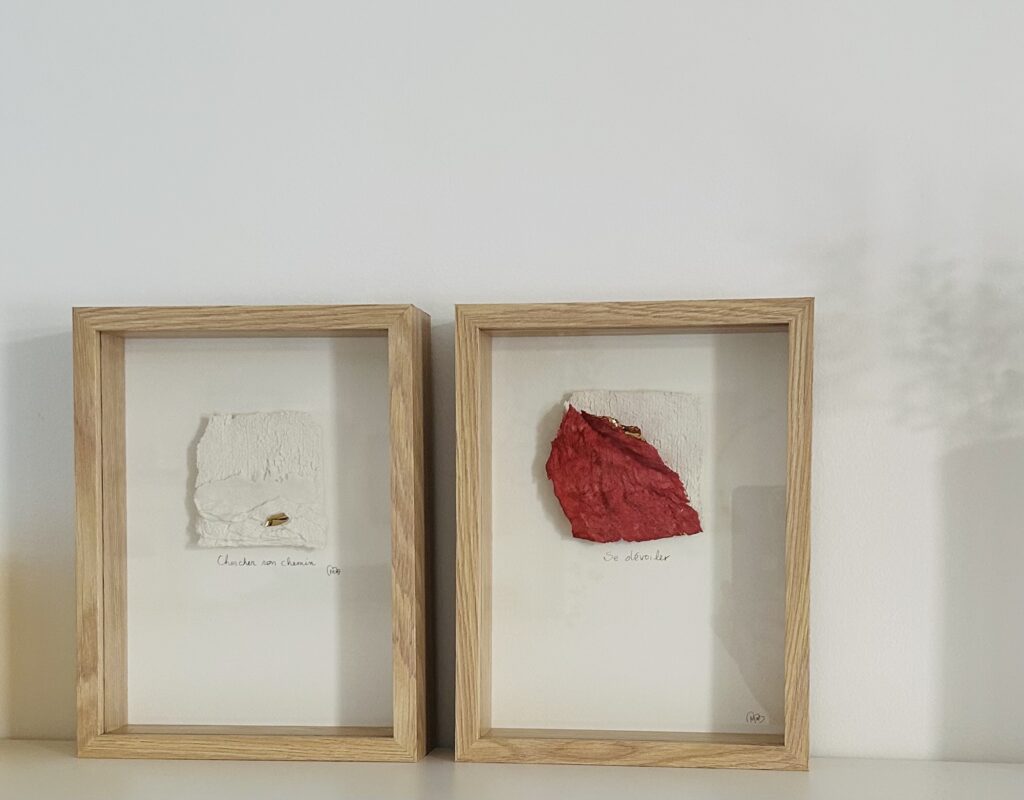 Illustration composée de couches successives de porcelaine papier grâce à une empreinte de différentes matières alliant végétaux, fibres et textiles de structures différentes. […]