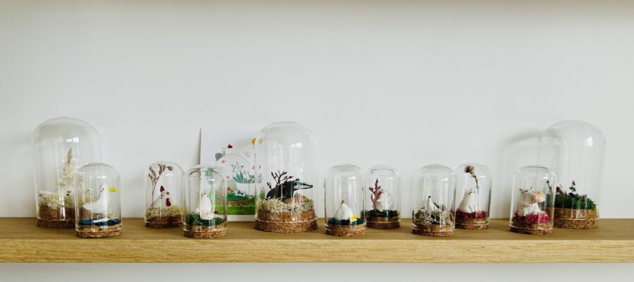Habitat : cloche en verre moyenne (6/11 cm) – socle en liège