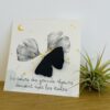 La texture de ses feuilles se prête totalement aux empreintes sur porcelaine, elle m’évoque depuis toujours un oiseau en plein vol, j’ai eu envie d’en utiliser quelques unes pour une nouvelle série de broches, toutes différentes : cette fois c’est la feuille qui détermine la forme de la broche.