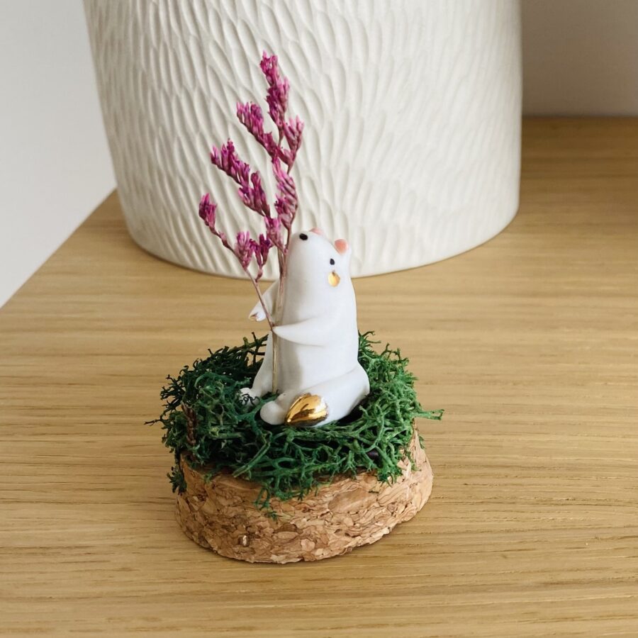 Sur son lit de mousse d’Islande (couleur stabilisée) & fleur séchée