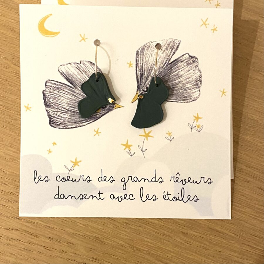• Présentée sur une carte illustrée 10/10cm :  ‘Les coeurs des grands rêveurs dansent avec les étoiles’