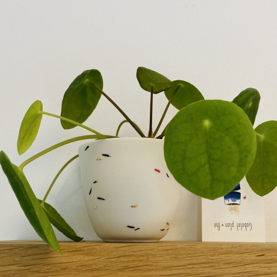 La forme arrondie du pot présente parfois des irrégularités et asymétries suivant les caprices de la matière vivante qu’est la porcelaine 😉