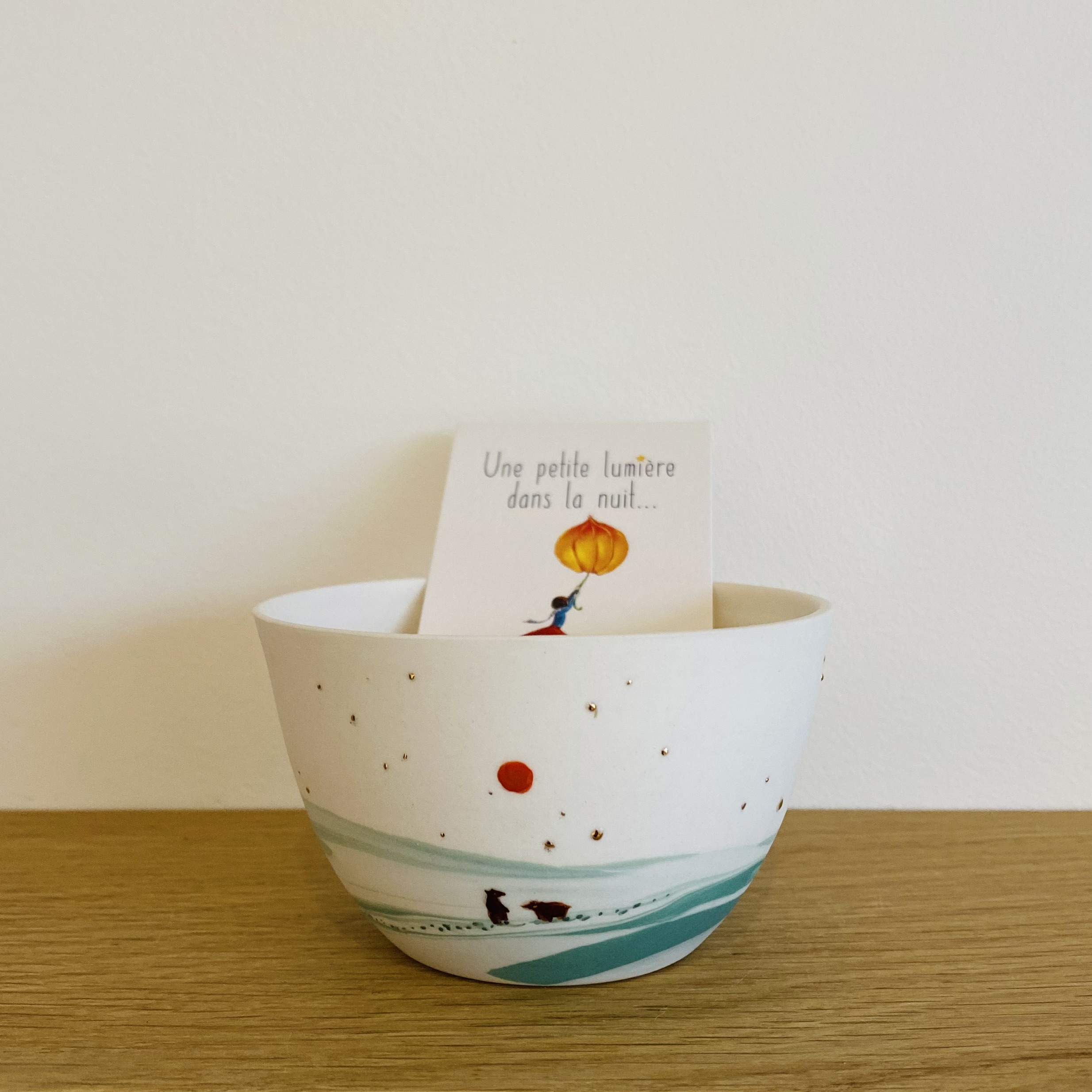 • Porcelaine teintée artisanalement – non émaillée et cuite à haute température – Détails à l’or fin