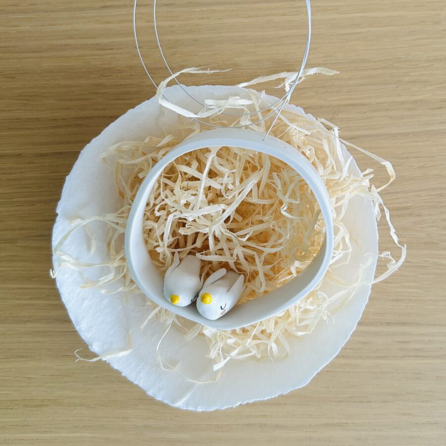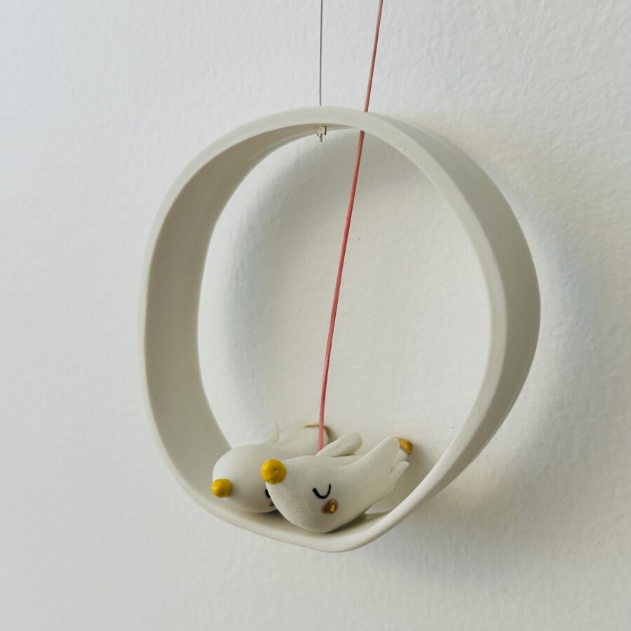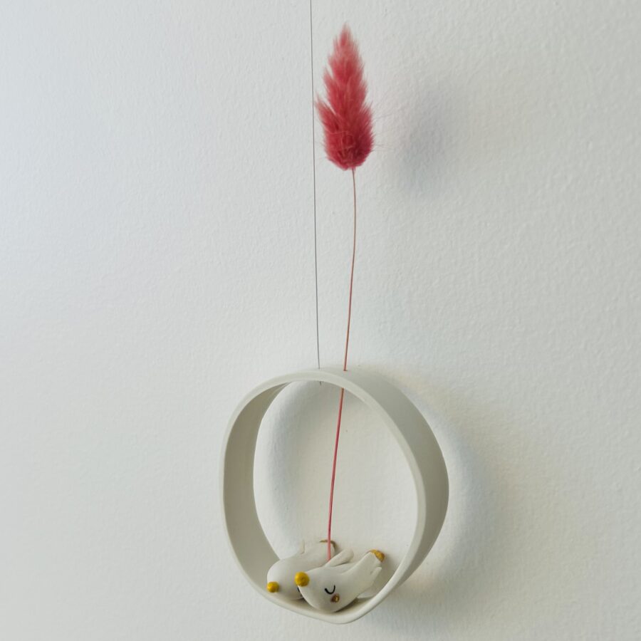 Petite série de suspensions en porcelaine, à accrocher au plafond ou dans un encadrement de fenêtre, très simplement, avec un petit crochet.