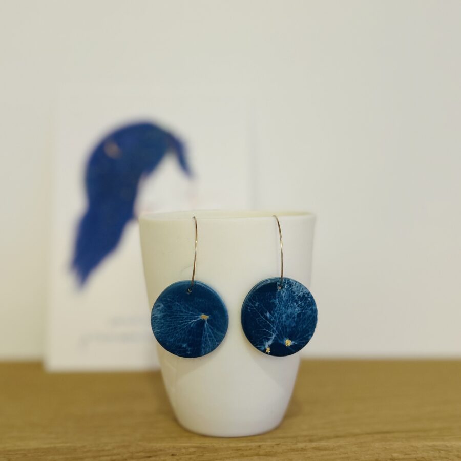 • BO rondes impression Hortensias – Porcelaine teintée en surface