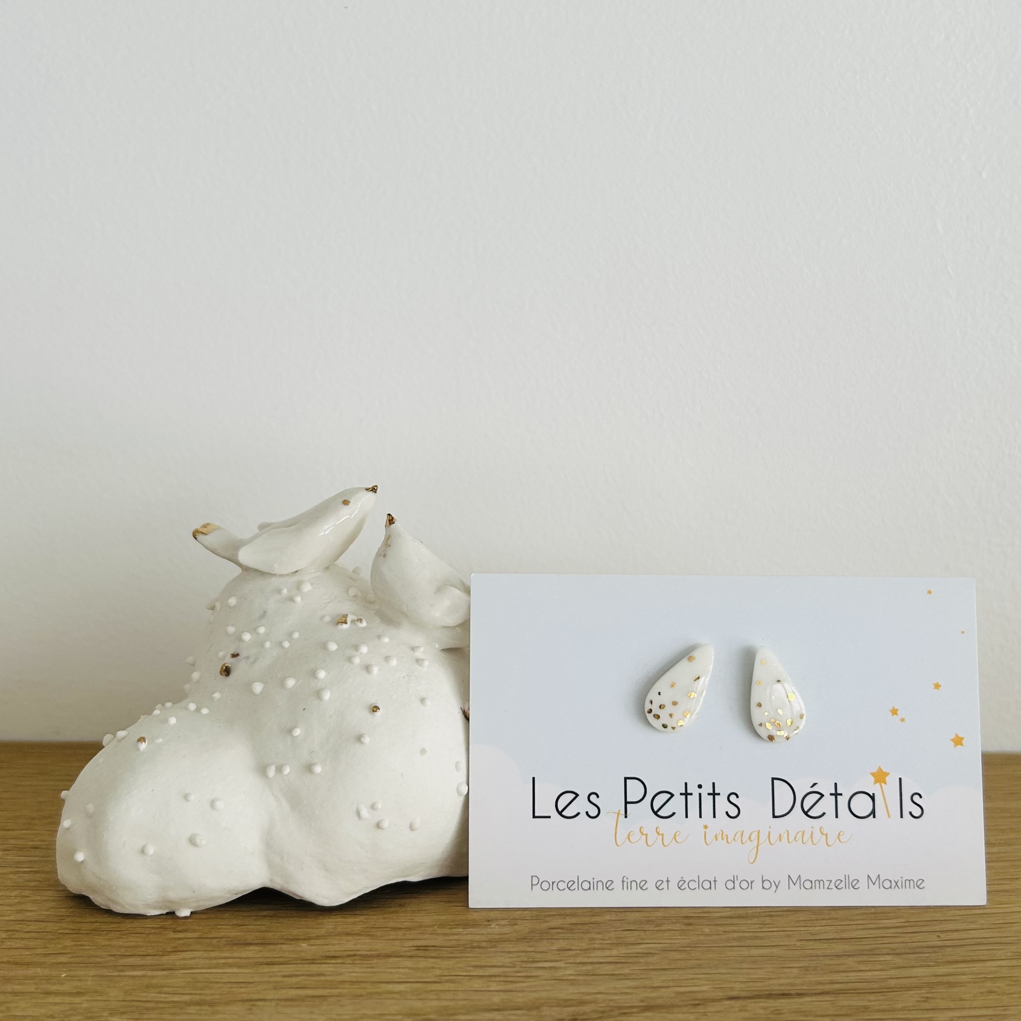 Motif en porcelaine découpé et façonné patiemment à la main, cuit plusieurs fois à haute température avant d’être fixé sur une monture en argent 925 qui vous évitera tout risque d’allergie.