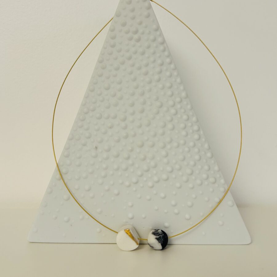 • Monture en fil câble doré, attache et finitions en argent plaqué or