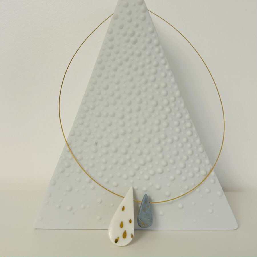 • Formes ‘gouttes’ en porcelaine (blanche et grise) émaillée