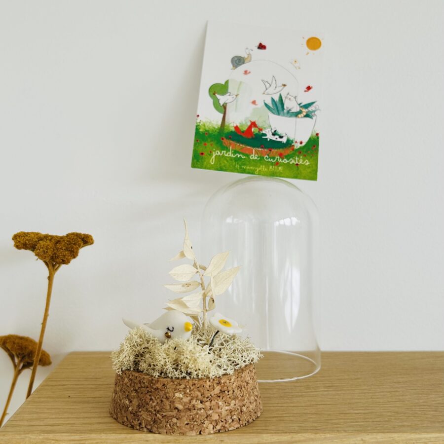 Habitat : cloche en verre moyenne (6/11 cm) – socle en liège